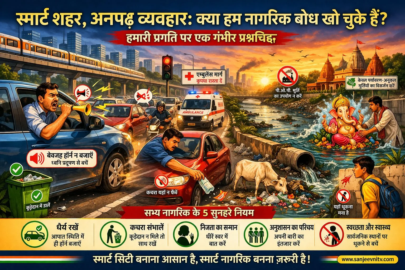 आज हम 21वीं सदी के उस दौर में हैं जहाँ शहर ‘स्मार्ट’ हो रहे हैं, सड़कें चौड़ी हो रही हैं और इमारतें आसमान छू रही हैं लेकिन हमारी मानसिता का स्तर दिन पर दिन गिरता जा रहा ह। तकनीक और भौतिक सुख-सुविधाओं की इस चकाचौंध के बीच एक बुनियादी प्रश्न खड़ा होता है—क्या हमारा ‘नागरिक बोध’ (Civic Sense) कहीं पीछे छूट गया है? नागरिक बोध वह अदृश्य सामाजिक अनुबंध है जो हमें सिखाता है कि सार्वजनिक स्थानों पर हमारा व्यवहार दूसरों के लिए कष्टकारी नहीं होना चाहिए। दुर्भाग्य से, आज हमारी सड़कों पर होने वाला शोर और गलियों में बिखरा कचरा हमारी सामूहिक विफलताओं की गवाही दे रहा है।