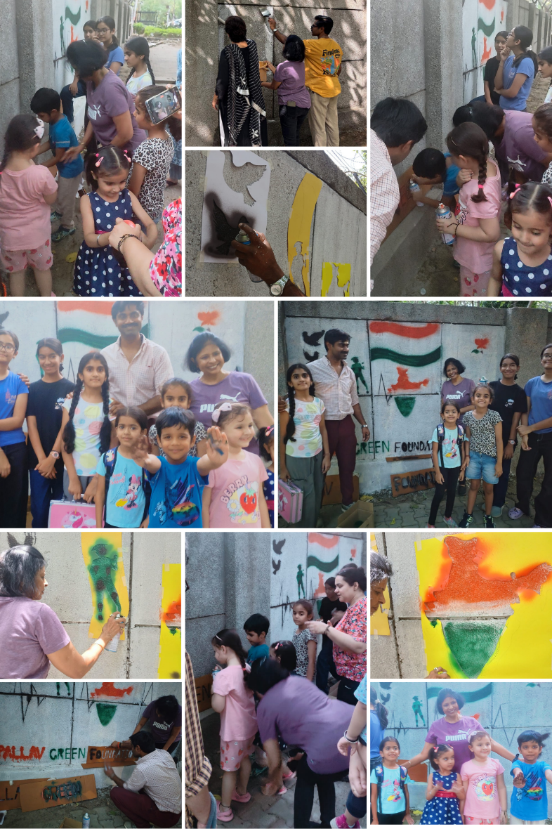 To instill a sense of patriotism and responsible citizenship, PGF organized a workshop where children created cutouts to paint a mural. On the theme of patriotism, the children showed their respect for the nation and its soldiers by painting the wall with the help of these cutouts.