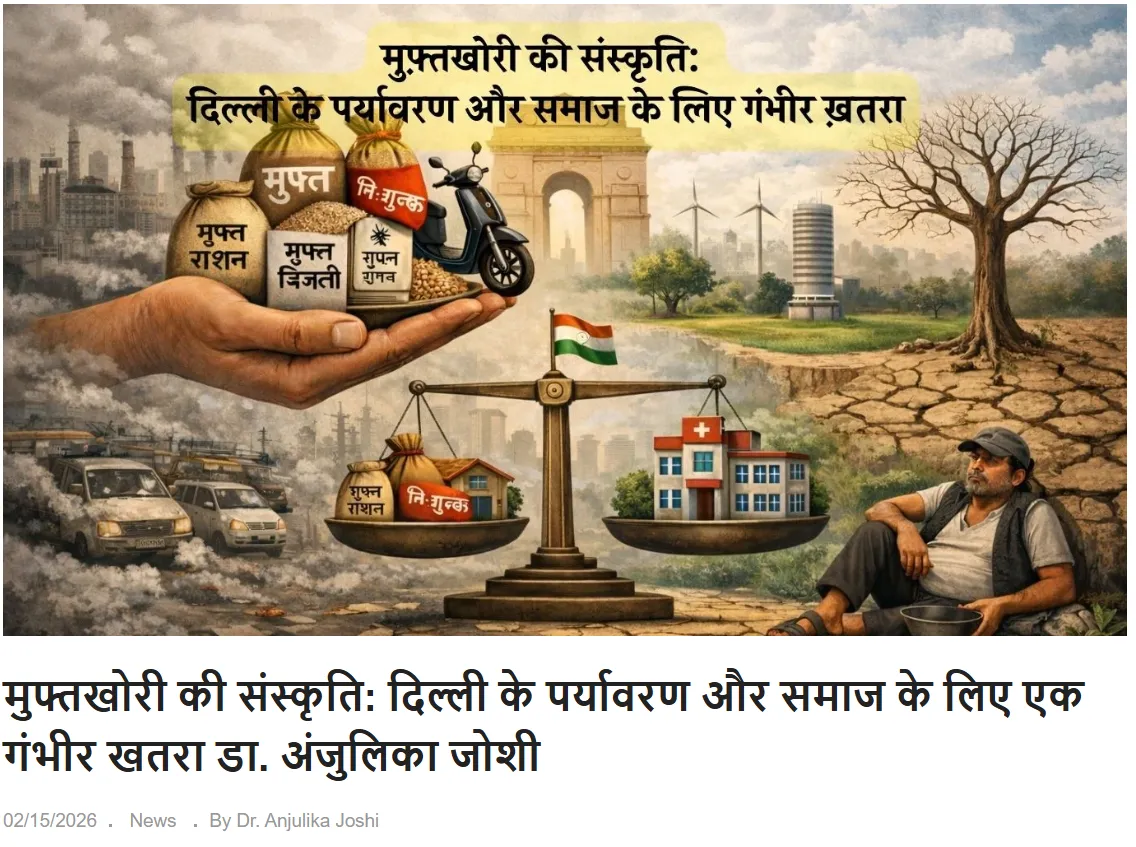 आज दिल्ली जिन दो सबसे बड़ी समस्याओं से जूझ रही है, वे हैं—प्रदूषण और गिरती हुई सामाजिक जवाबदेही। हालाँकि, इन दोनों के मूल में एक ही कारण छिपा है: ‘मुफ्त सुविधाओं की राजनीति’ (Freebie Culture)। जब सरकारें बिना किसी शर्त के संसाधन बांटती हैं, तो न केवल अर्थव्यवस्था चरमराती है, बल्कि नागरिकों के चरित्र और पर्यावरण पर भी इसका गहरा दुष्प्रभाव पड़ता है।
